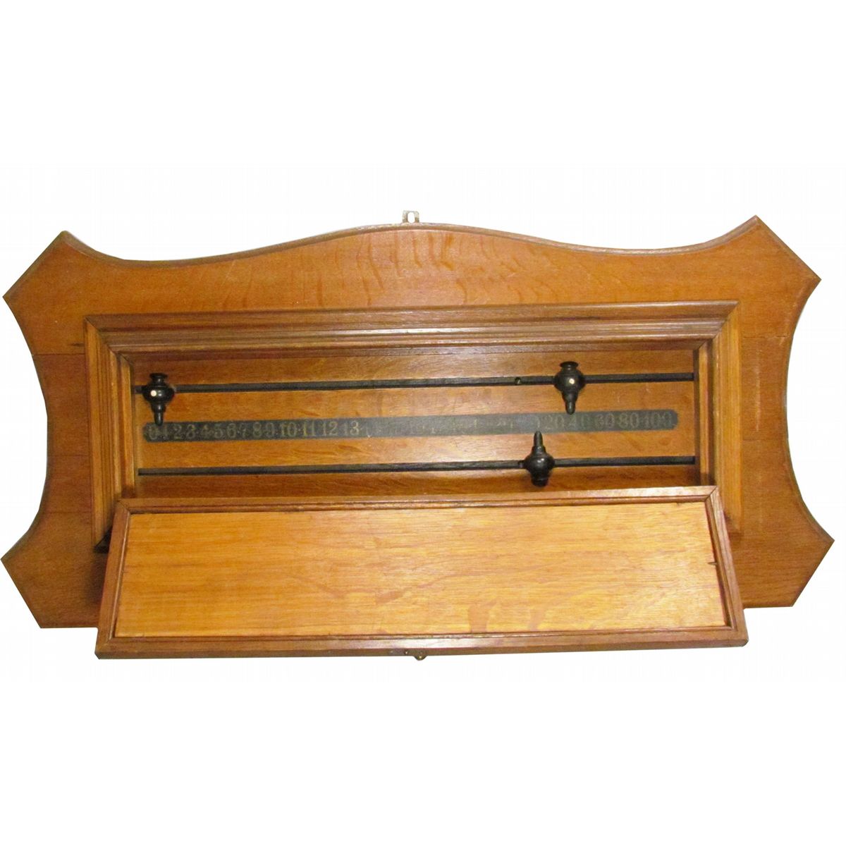E. S. Riley Oak Pool Hall Scoring Rack. Very good original condition. 30 1/2 X 14 1/2 inches.