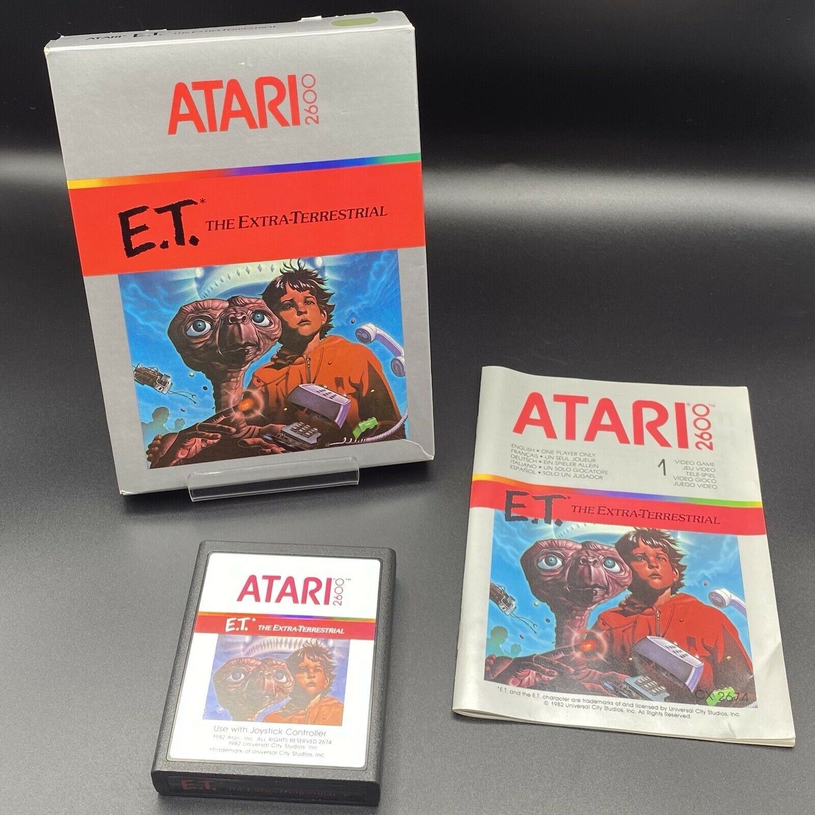 E.T. the Extra-Terrestrial is a 1982 adventure video game developed and published by Atari. Based on the classic 80’s Spielberg movie. A must have for any collector/investor as this is a huge part of video game history.