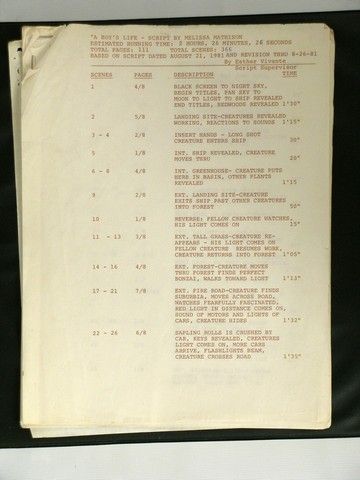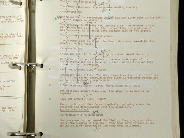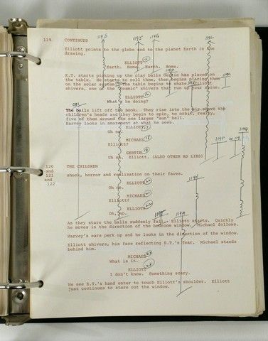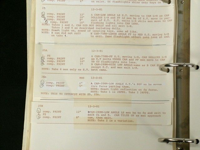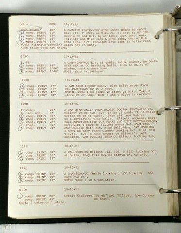 A true one-of-a-kind historical treasure. Script Supervisor Esther Vivante’s actual working supervisor script from Steven Spielberg’s classic “E.T. the Extra-Terrestrial”. It is filled with hundreds of two-sided pages including the shooting script, shot-for-shot notes, continuity, blocking, lenses, and details on every single take, dialogue changes, and more. This is the original shooting script, with all the “white-out”, pencil and ink notations, cutouts, etc. Includes the full timing pre-production sheet as well. In its original binder and comes with a copy of a photo of Ms. Vivante with ET, holding her script on the set, and autographed by Spielberg, thanking her for her contribution. Known as "the book," supervisor's original noted scripts are usually turned into the editor at the end of production, so this is a rare item to come across. Comes from the personal collection of the late, great Esther Vivante. Also included is a Letter of Provenance from a family member. This item has been authenticated and marked with new technology by MovieProps DNA to prevent against fraud and counterfeiting. A panel of industry experts not affiliated with Premiere Props in the movie & TV memorabilia business has authenticated this item. This item now includes three levels of security: 1) DNA laced invisible ink – a 9-digit code laced with DNA ink is placed on an appropriate place of the prop/costume and can be only viewed using a high-frequency UV light. The chances of replicating the specific DNA sequence which is unique to MPDNA is 1 in 33 trillion. This DNA sequence is so secure it is admissible in a court of law.?? 2) Archival Microchip Encrypted Tag - a patented, acid-free, 1"x 3" tag with an encrypted microchip is placed onto the Certificate of Authenticity. The microchip contained within the tag contains all of the pertinent information about the prop or costume. The tag is tamper proof and the microchip is encrypted, making it impossible to duplicate.? 3) The certificate also has the 9-digit DNA invisible ink mark which must match the 9-digit invisible ink mark on the prop. This will ensure that it is a genuine prop issued by Premiere Props and authenticated by MPDNA.