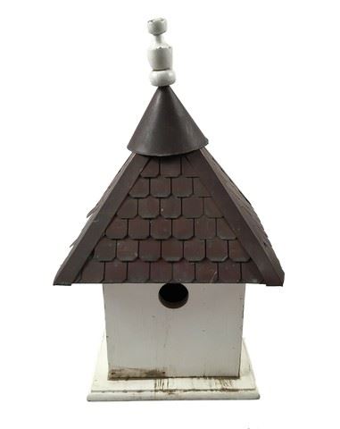 One of the most loved characters in the world is E.T. and from E.T. the Extra-Terrestrial (1982) is this production acquired white wood with thin metal roof birdhouse. There are very few movie props that are available from this film. This piece measures approximately 18" x 10 1/2".