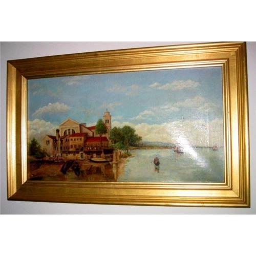 South Italian seescape with a Sicilian village and Fischermen ,made by an British artist , signed g.Harteway before 1850, the frame is old and need some restoration. The painting was restored I believe end of the 19 century. Size: 26" X 16" included frame