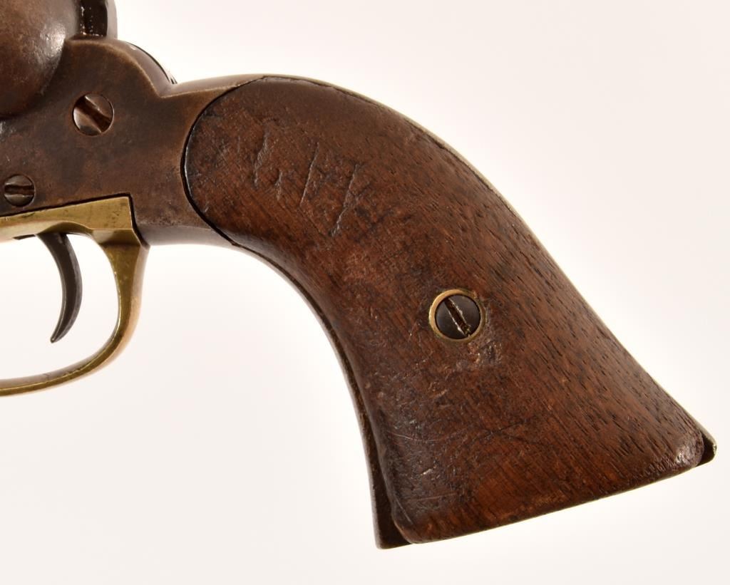 S/N 29345. Grips carved "CH" on left side and "DOJ" on right side. 7.5" octagon barrel.
