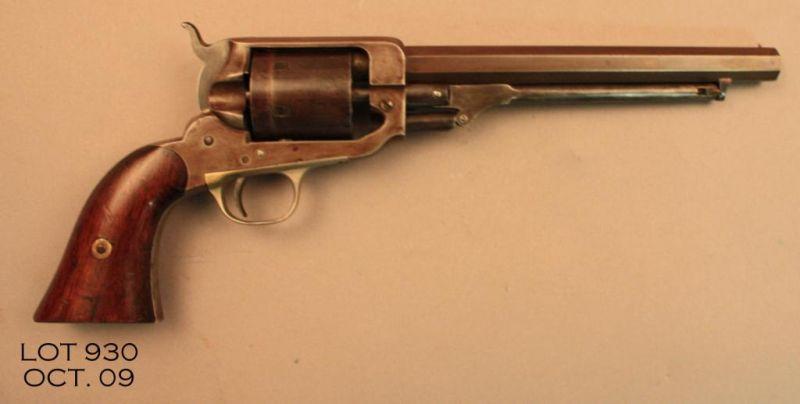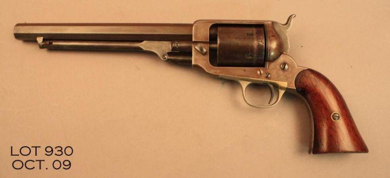 E. Whitney conversion revolver, .36 cal., 7-3/4” octagon barrel, smooth wood grips, #323. This gun is in overall good condition as period converted from percussion to cartridge, brown patina finish, very good bore, crisp action, good markings andgood grips. Left side of frame inspector marked “F.C.W.”. Est.: $800-$1,600.