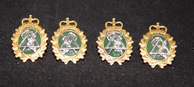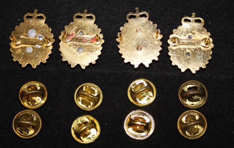 Gold plated base with green enamel centre oval with silver attached overlay, clutch pin fasteners. Lot of 4. Thompson Q141.