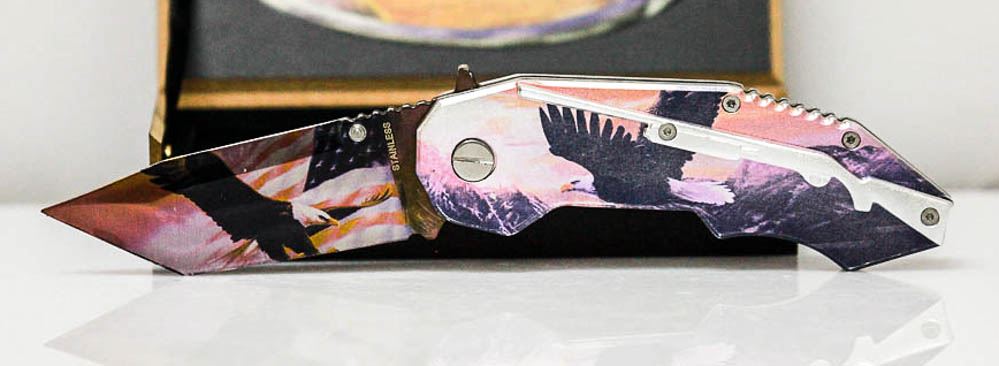 EAGLE AND SHOTGUN DESIGN STAINLESS STEEL TONTO BLADE KN **|**|** EAGLE AND SHOTGUN DESIGN STAINLESS STEEL TONTO BLADE KNIFE W/ WOODEN BOX
