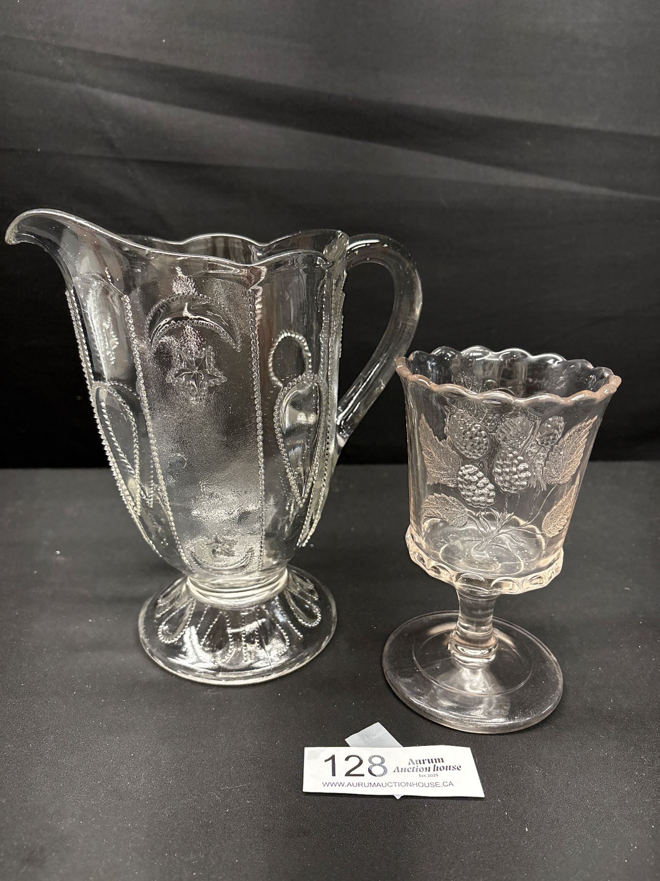 EAPG 1903 Jewelled Moon and Stars Water Pitcher and Strawberry and Raspberry Goblet