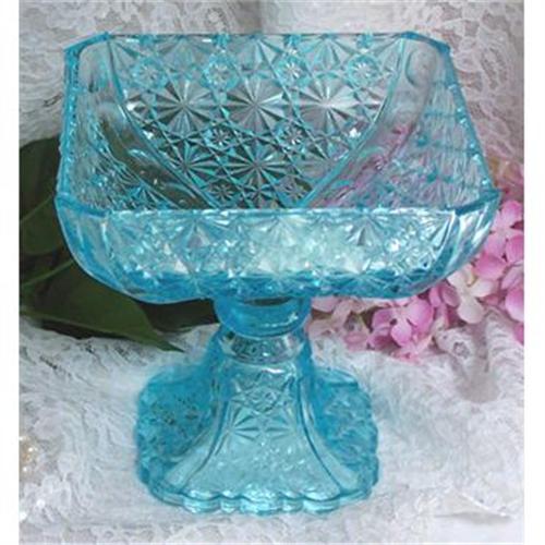 <tr><td>Title:EAPG Blue Daisy Button Thumbprint Glass Compote</td></tr>
