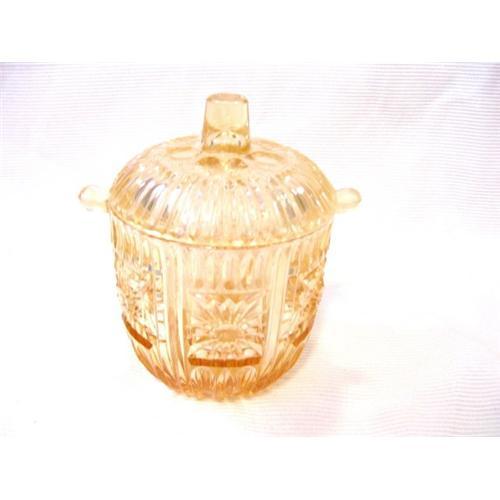 This is an Early American Pattern Glass Cracker Jar. It is brown in color. It is in good condition. Any other Q's, just email me. Thanks for Looking