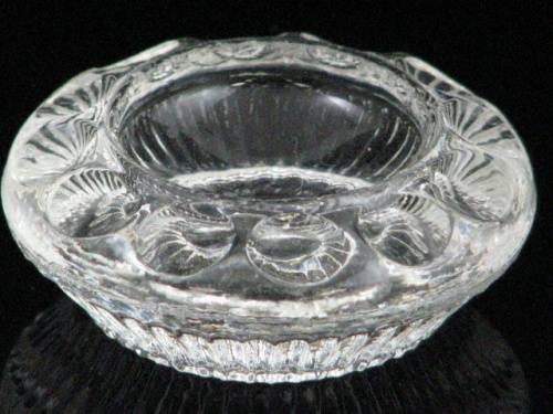 EAPG Crystal open salts with thumbprint band, set of 6 matching. Some chips around inner edge. Each salt measures 3/4"H x 2"D