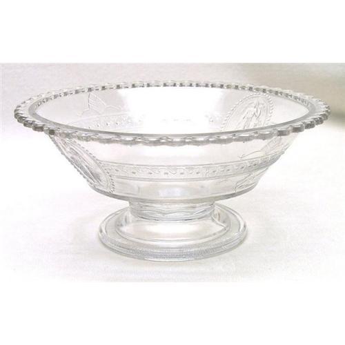 This Early American Pressed Glass footed open compote is in the Cupid & Venus pattern and was made by the Richards and Hartley Flint Glass Co. circa 1875 - 1884. It is also known as the Guardian Angel pattern. It measures 7 1/2" diameter and 3 1/2" tall. It has no chips. Please look at our other Cupid and Venus pieces we are offering - we are always happy to combine purchases to save on shipping.