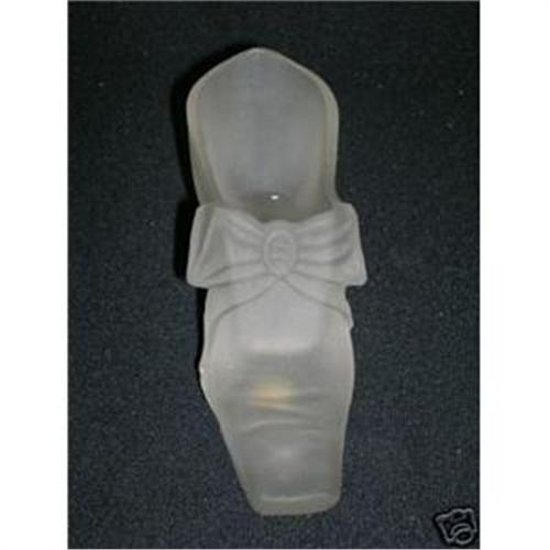 This is a neat pressed glass shoe made by Gillinder & Sons for, and at, the 1876 Philadelphia Centennial Exposition. The shoe is frosted. There is an embossed mark inside the bottom of the shoe which reads: GILLINDER & SONS, CENTENNIAL EXHIBITION. Gillinder & Sons was formed around 1867. In 1876 the company built an exhibition glass factory in Philadelphia on the site of the American Centennial Exhibition. This shoe was one of the souvenir items produced for that exhibition. The shoe measures 2-1/2? high at the heel, 6" long and 2? wide at the bow. There may be some bubbles and straw marks and some very small pin point flakes along the edges and corners, and the white square you see on the bottom is tag residue. There are no chips, flakes or cracks. All in all this is a beautiful item in great condition for its 131 years of existence.