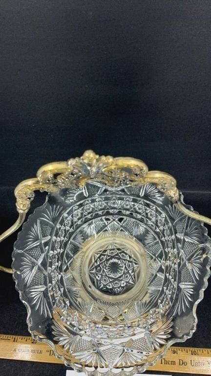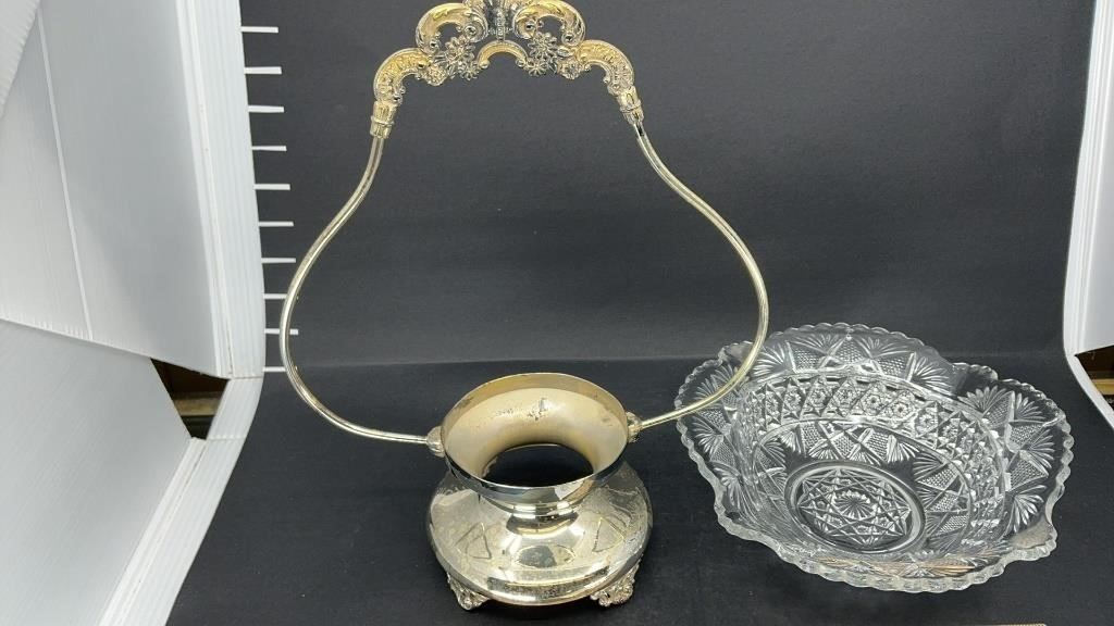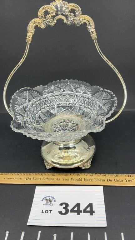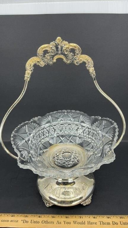 EAPG GLASS BRIDES BASKET, SILVER CARRIER