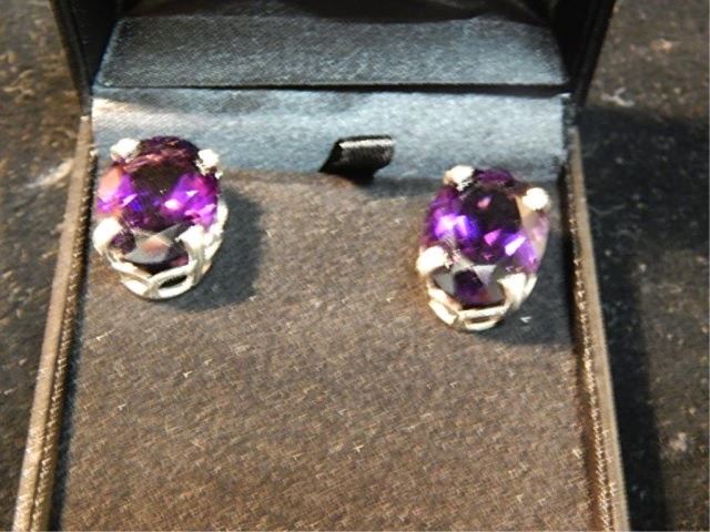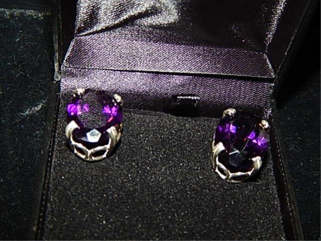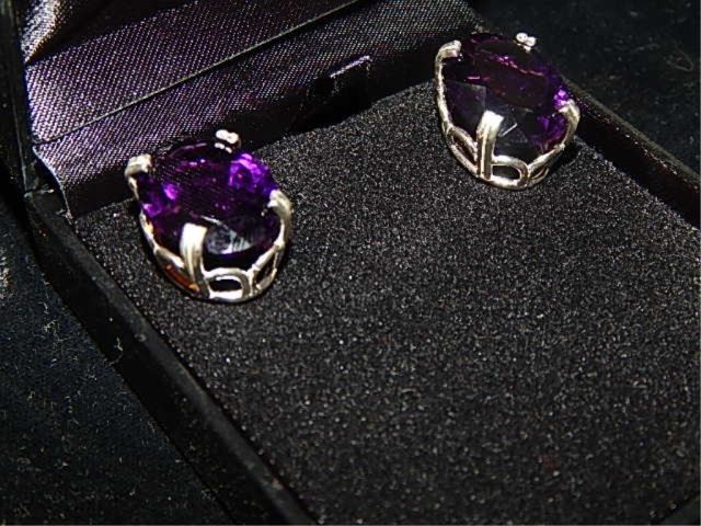 EARINGS - FACETED AMETHYST (29.60CT - TYPE II - VS CLARITY) - SECURED IN STERLING SILVER 4 CLAW PIERED EARRING SETTING WITH FRENCH POSTS AND BUTTERFLY BACKINGS - WITH CERTIFICATE - $1450