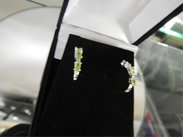 EARINGS - PERIDOT - 1/2 HOOP - SET WITH 4 DIAMONDS IN STERLING SILVER SETTING - INCLUDES CERTIFICATE $400