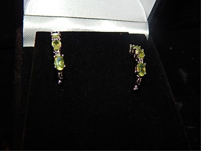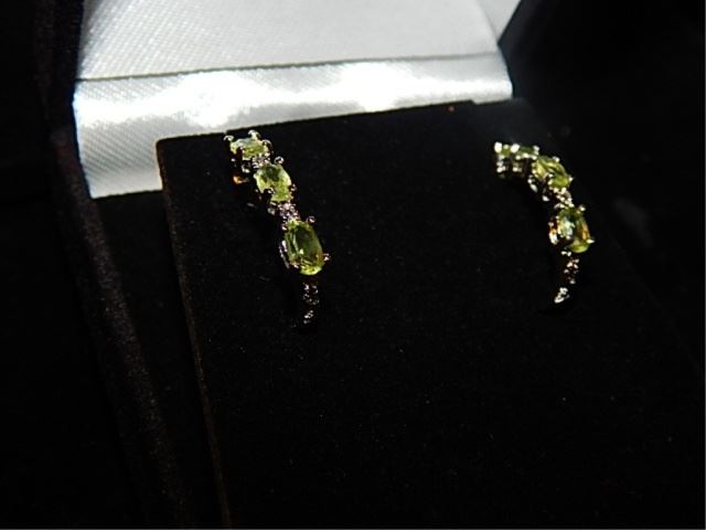 EARINGS - PERIDOT AND DIAMONDS SET IN 925 STERLING SILVER - TTL 6 PERIDOTS AND 4 DIAMONDS IN THE PAIR - INCLUDES CERTIFICATE - $400