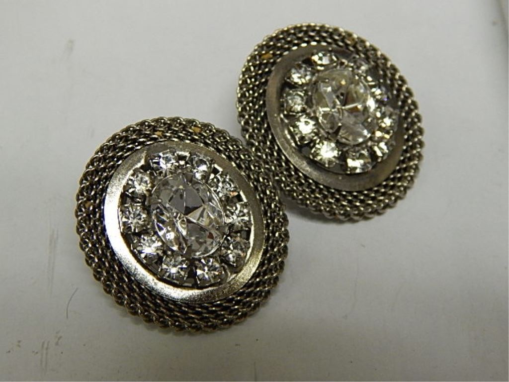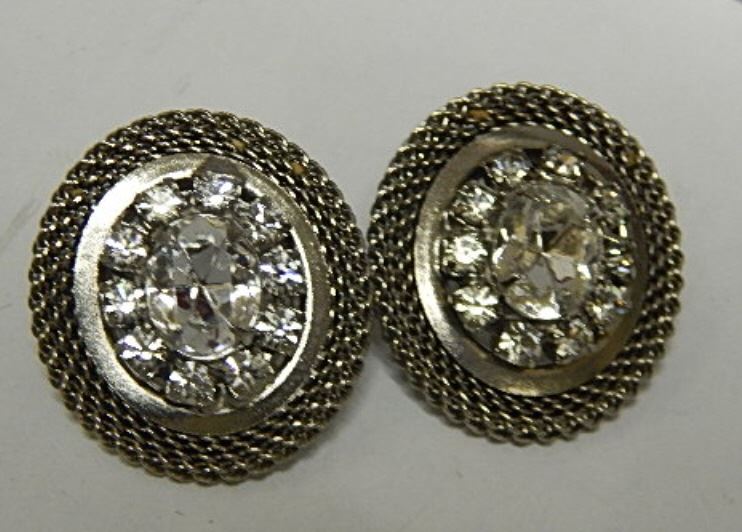 EARINGS - PIERCED - SILVER TONE - CLEAR RHINESTONES - ROPE DESIGN ON EXTERIOR