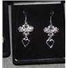 EARINGS - SILVER TONE WITH RHINESTONES - BUTTERFLY AND HEART