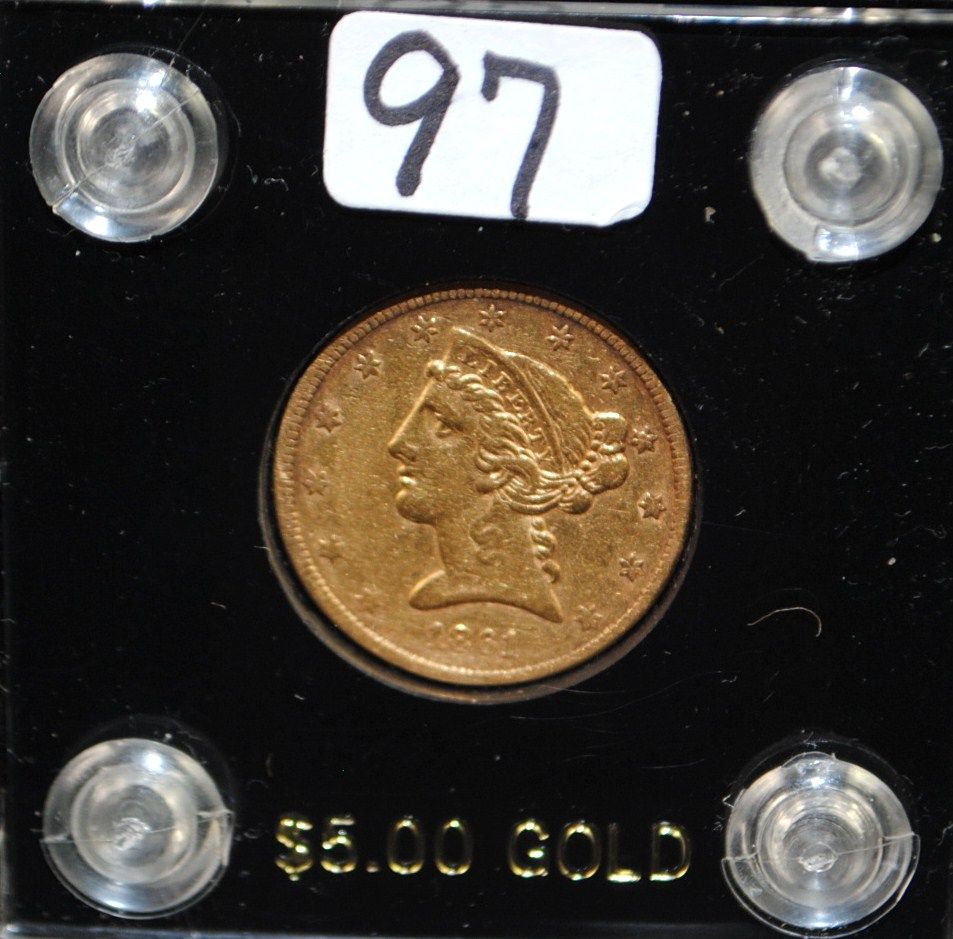 EARLY 1861 $5 LIBERTY GOLD COIN