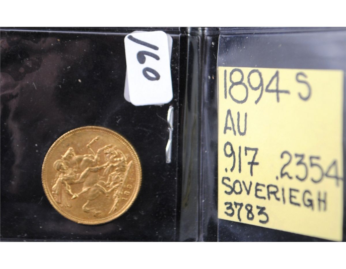 EARLY 1894S VICTORIA GOLD SOVERIEGH - SELLER GRADED @ AU