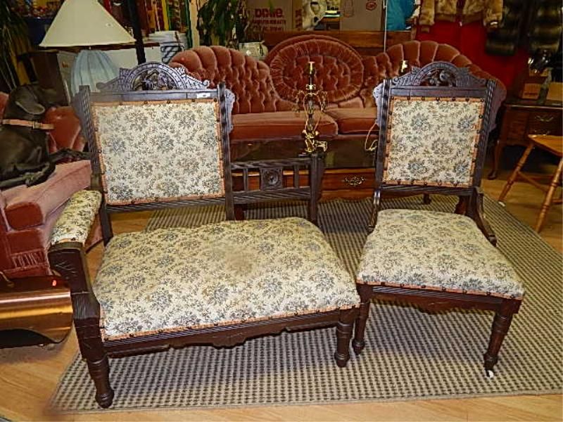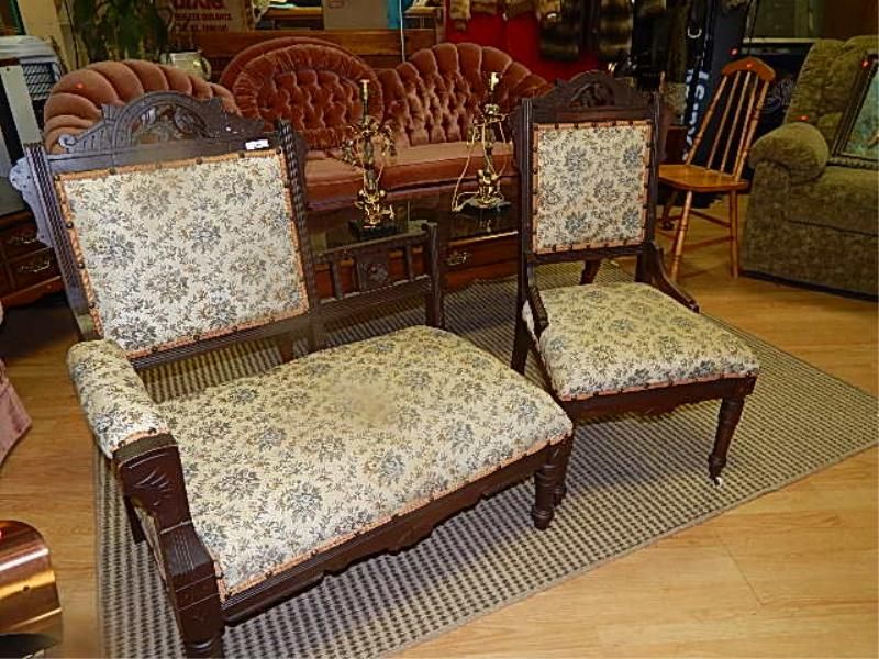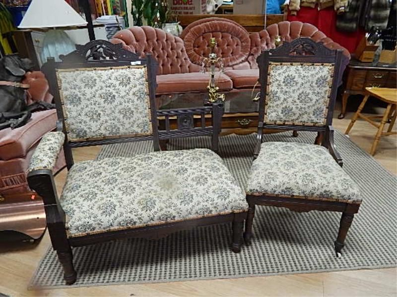 EARLY 1900'S SETTEE 2PC SET - SOLID WOOD - GREAT CONDITION