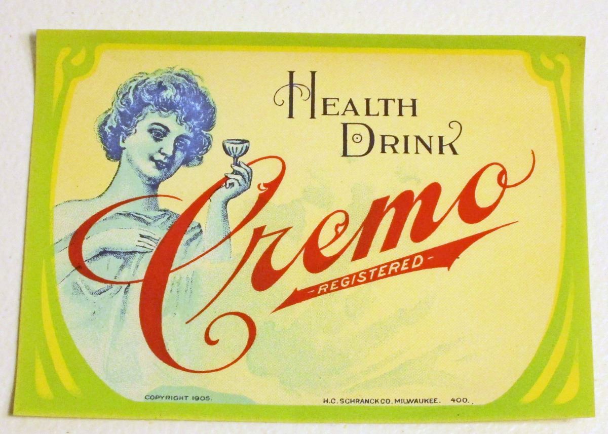 EARLY 1905 CREMO HEALTH DRINK ADVERTISING LABEL