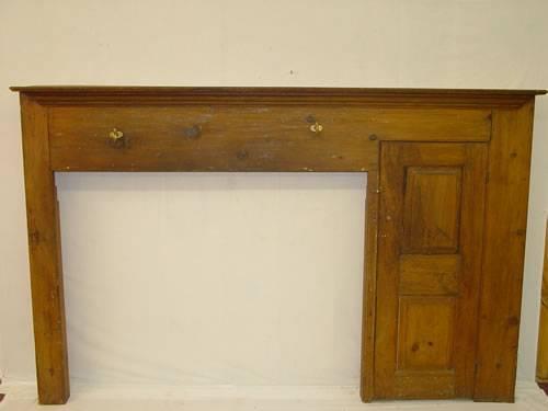 EARLY 19TH CENT. NEW ENGLAND PINE MANTLE & HEARTH FRAME W/ SINGLE DOOR CHIMNEY CUPBOARD W/ DOUBLE RAISED PANEL DOOR (90" L X 50 1/2" T) OLD NATURAL FINISH - IMPERFECTIONS & ALTERATIONS;
