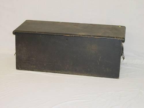 EARLY 19TH CENT. PINE CANTED, DOVETAILED SEA CHEST W/ INTERIOR TILL COMPARTMENT IN BLACK PAINT - WEAR & IMPERFECTIONS;