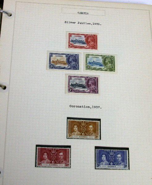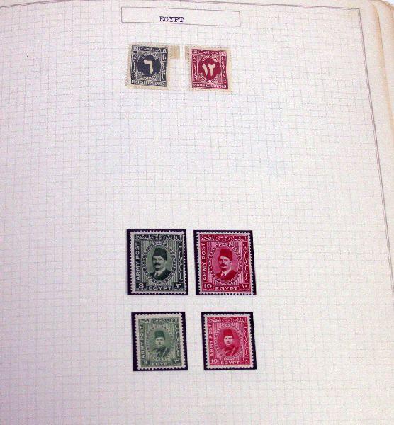 Stamps are all postal issue unhinged and unissued. Stamps included are all before 1950s. British Commonwealth locations represented and page quantities for each include: Egypt (26), Falkland Islands & Dependencies (12), Fiji (4), Gambia (3), Gibraltar (4)