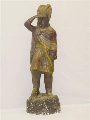 EARLY 20TH CENT. 58" PAINTED PLASTER CIGAR STORE INDIAN - PAINT LOSSES and WEAR;