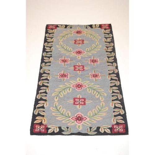 EARLY 20TH CENT. FLORAL HOOKED RUG W/ LEAFY BORDER (2 FT. 6" X 6 FT. 3 1/2") - LIGHT WEAR & SOILING