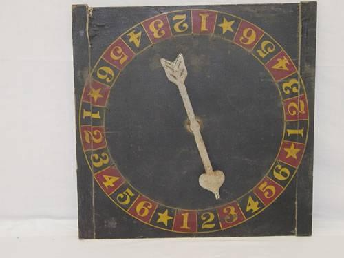 EARLY 20TH CENT. PAINTED CANVAS ON WOOD GAME WHEEL (28" X 28") - LOSSES and WEAR;