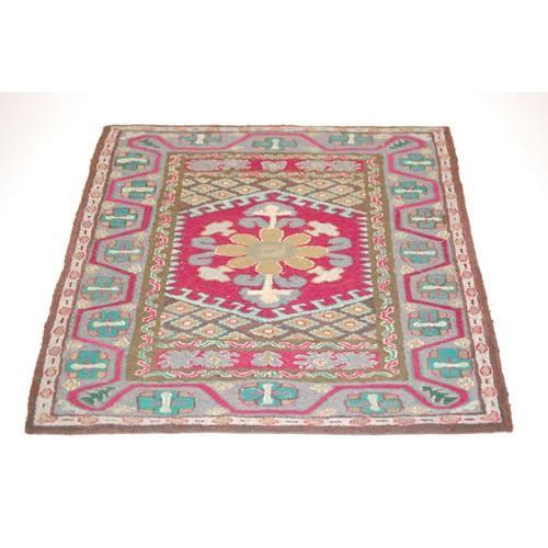 EARLY 20TH CENT. PERSIAN CARPET DESIGN HOOKED RUG (2 FT. 6" X 4 FT. 1") - LIGHT WEAR & SOILING