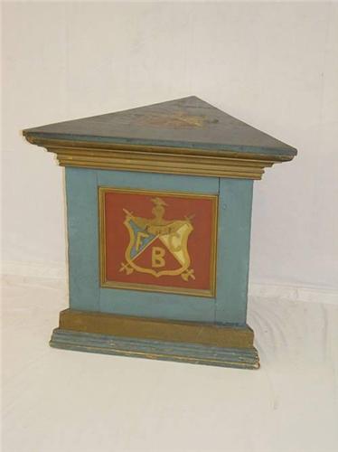 EARLY 20TH CENT. TRI-CORNER PEDESTAL PAINT DECORATED W/ SHIELD CREST OF THE KNIGHTS OF PITHIAS - IMPERFECTIONS & WEAR;