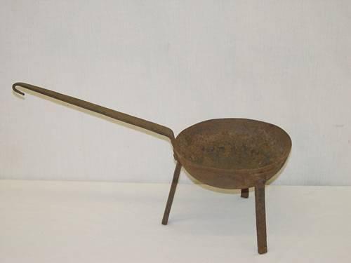 EARLY 7 1/2" WROUGHT IRON TRIPOD SKILLET W/ LONG HANDLE;