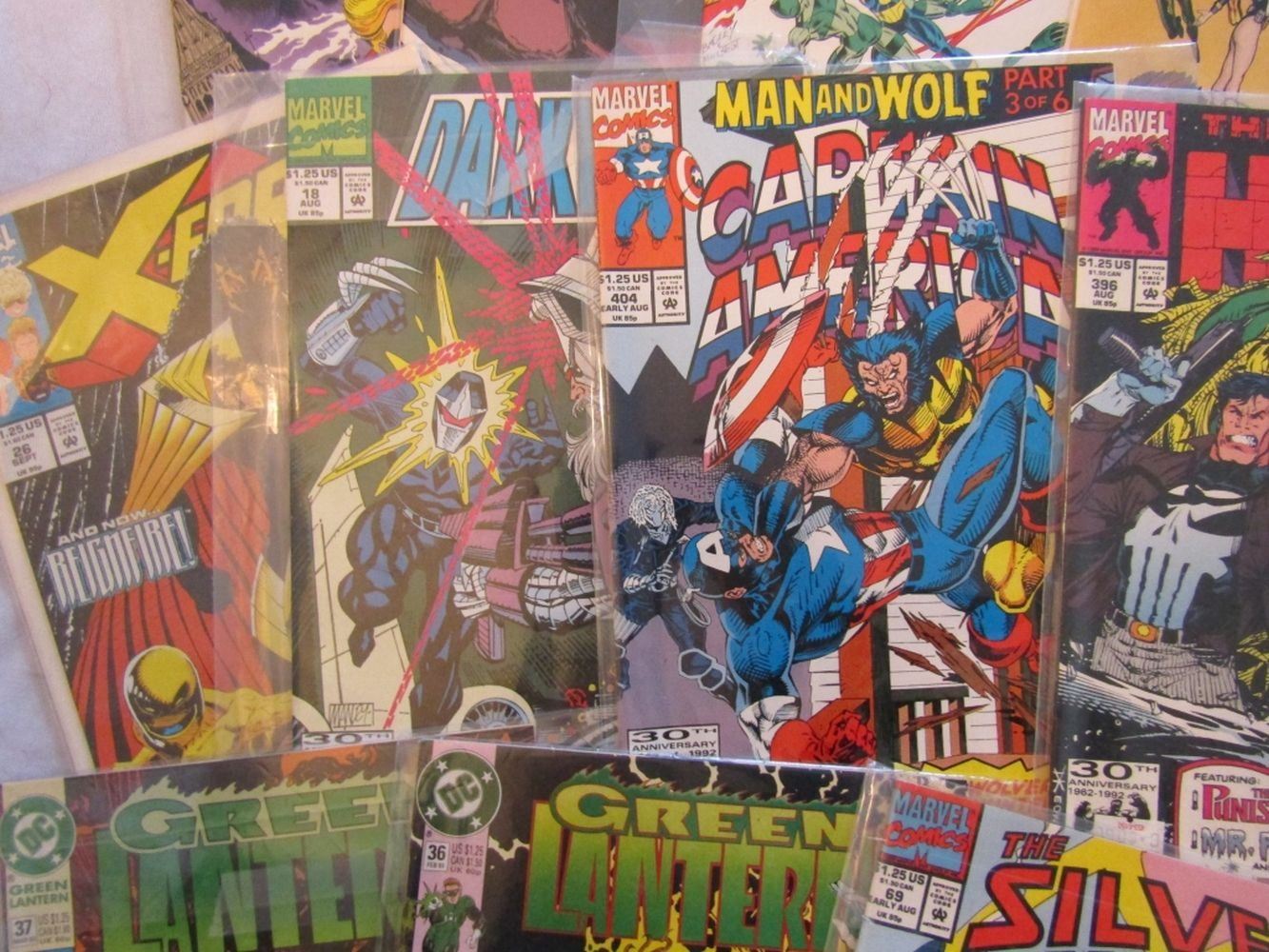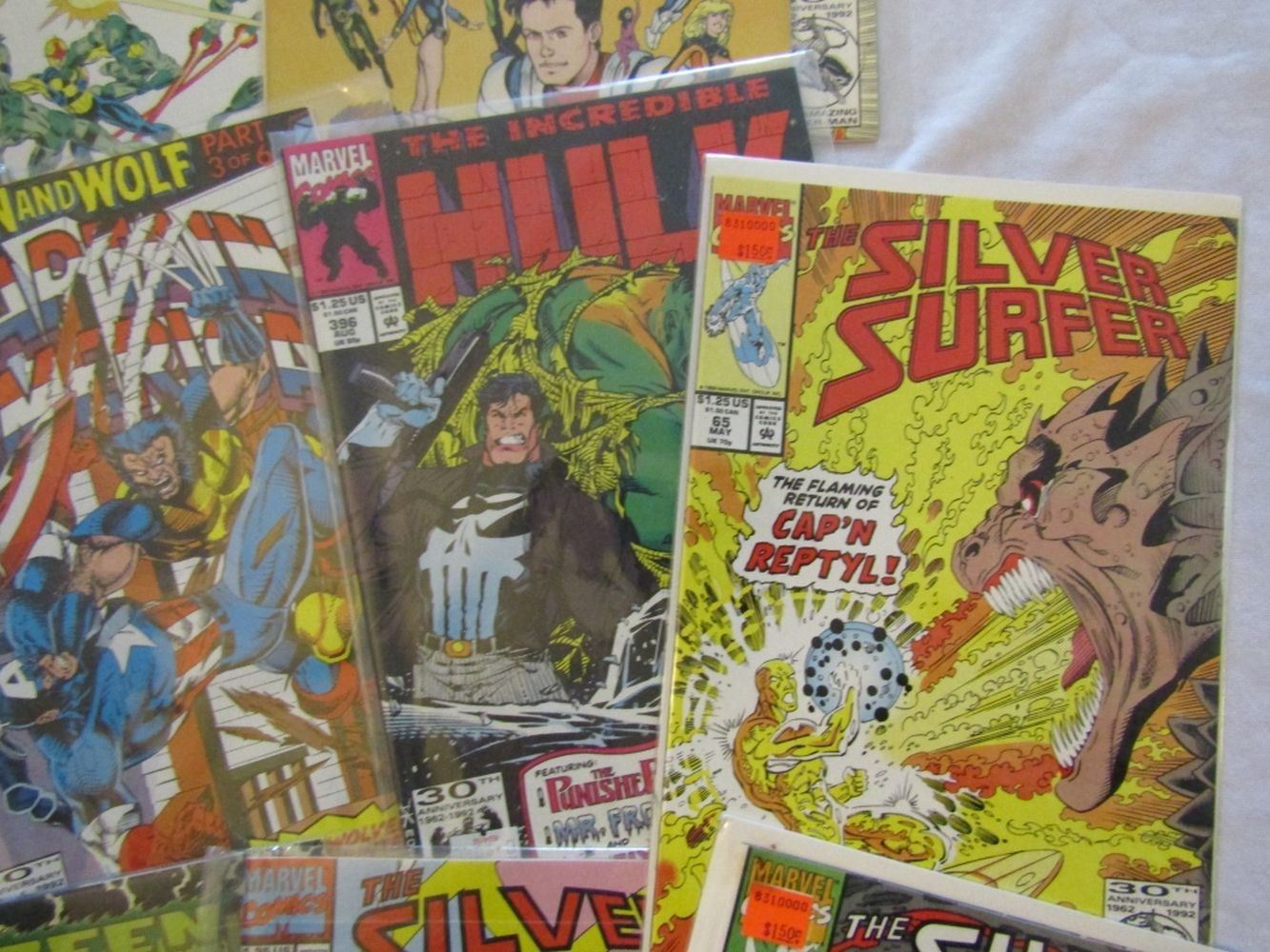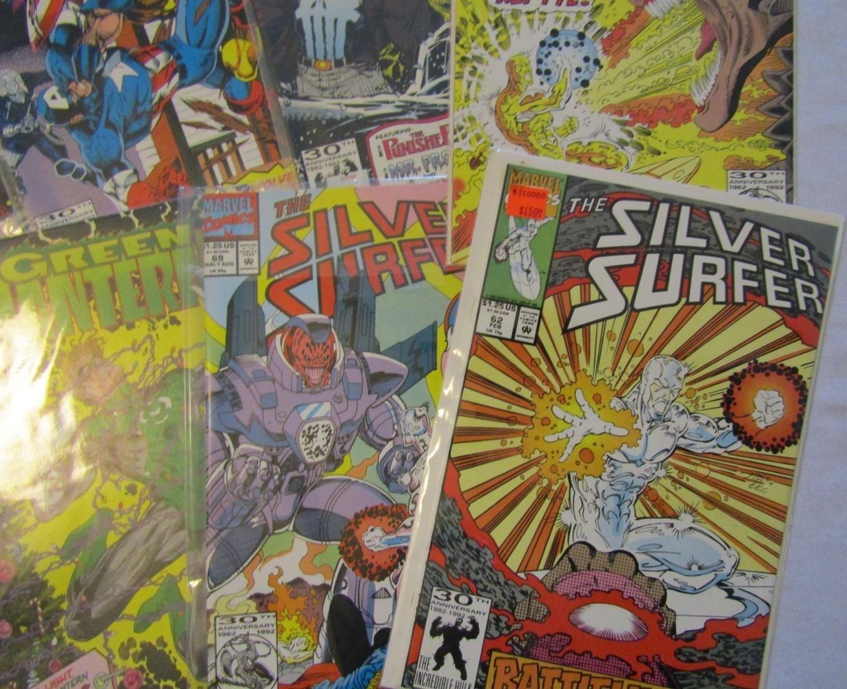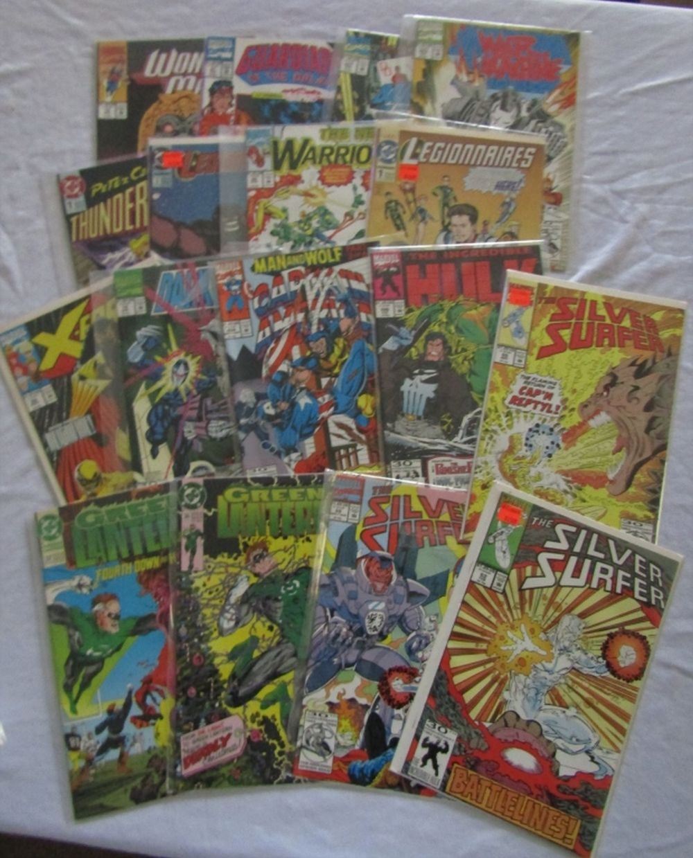 ALL DIFFERENT: 3-SILVER SURFER, 2-GREEN LANTERN, HULK, CAPT AMERICA, DARKHAWK, X-FORCE, 8-OTHER ACTION COMICS - ALL IN SLEEVES & NICE