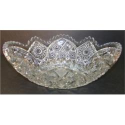 Early American pattern glass center bowl with fluted edge. 4.25" H, 11.5" L