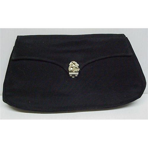THIS IS LOVELY LADIES PURSE, PROBABLY DATING FROM 1920 - 40's, IT IS BLACK AND THE FABRIC RESEMBLES FINE CORD, SIGNED:MADE IN USA, VERY NICE ELEGANT STYLE AND I JUST LOVE RHINESTONE CLASP,as per picture, EXCELLENT USED CONDITION, FREE FROM TEARS OR STAINS, MEASURES 10 1/2" X 5 1/2",US BUYER PLEASE PAY 7.00 FOR SHIPPING PLUS INSURANCE.THANKS
