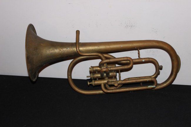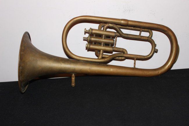 EARLY BRASS HORN BY CARL FISCHER - NO MOUTHPIECE SOME DENTS