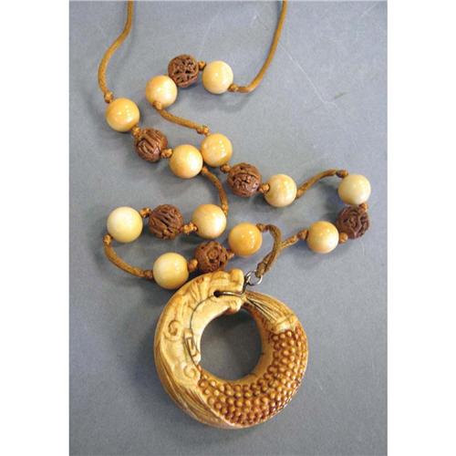 EARLY CARVED ASIAN NECKLACE with dragon
