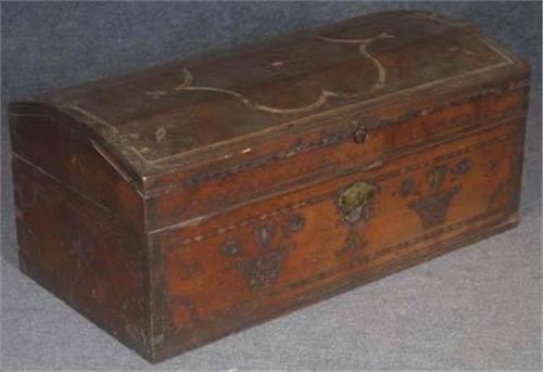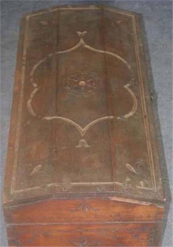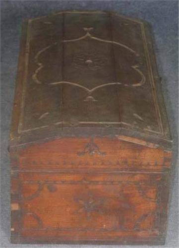 EARLY CARVED WALNUT CHEST 18th Century, possibly Pennsylvania, old finish height: 12 1/2", width: 29" depth: 15"