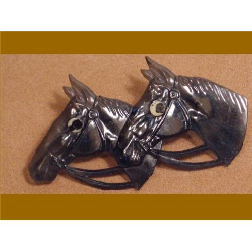 <tr><td>Title:EARLY Cellluloid signed double HORSE brooch</td></tr>
