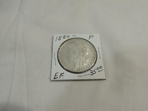 EARLY DATE 1880 (EF) MORGAN SILVER DOLLAR. AS SHOWN. VIEW PICTURE FOR DETAIL.