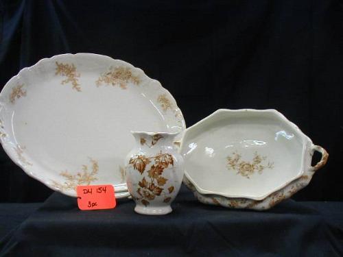 EARLY ENGLISH, BROWN TRANSFER INCLUDES (1) 14 3/4in OVAL PLATTER EXCELLENT (OLD GLAZE POP ON BACK), (1) SERVING DISH BASE ONLY PORC. PITCAIRNS LIMITED TURNSTALL ENGLAND CLIFTON (W/OLD RIM CHIP), (1) 5 1/4in VASE EXCELLENT, 3 PC