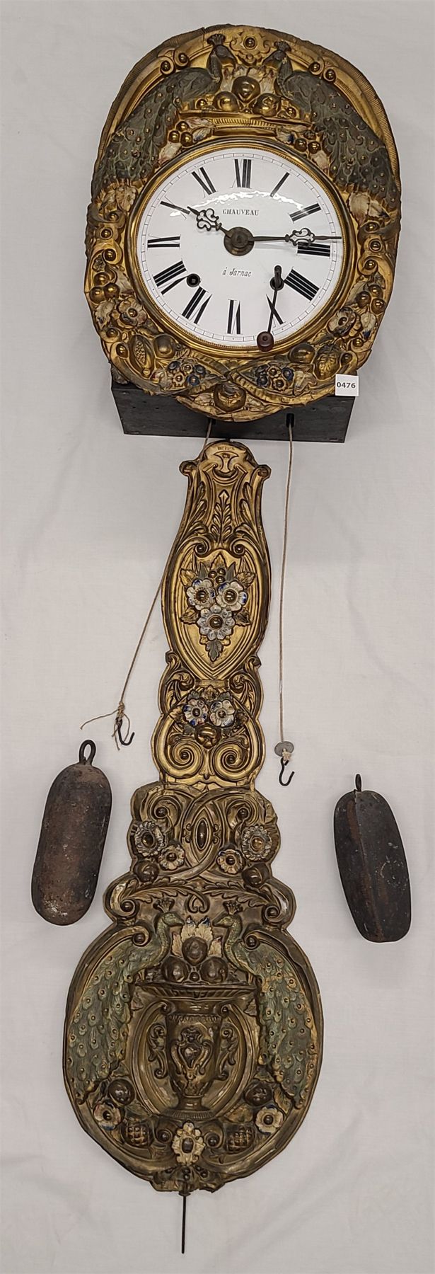 NOTE: CLOCK FACE AT 9IN DIA - 55IN LONG - WORKING CONDITION UNKNOWN