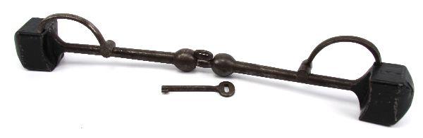 Set of 39 inch early German POW weighted leg irons with original key. Very good condition.