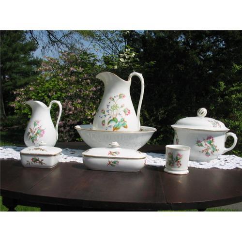 RARE EARLY (1868-1881) HAVILAND LIMOGES SEVEN PIECE WASH SET IN GREAT CONDITION!</em></td>
