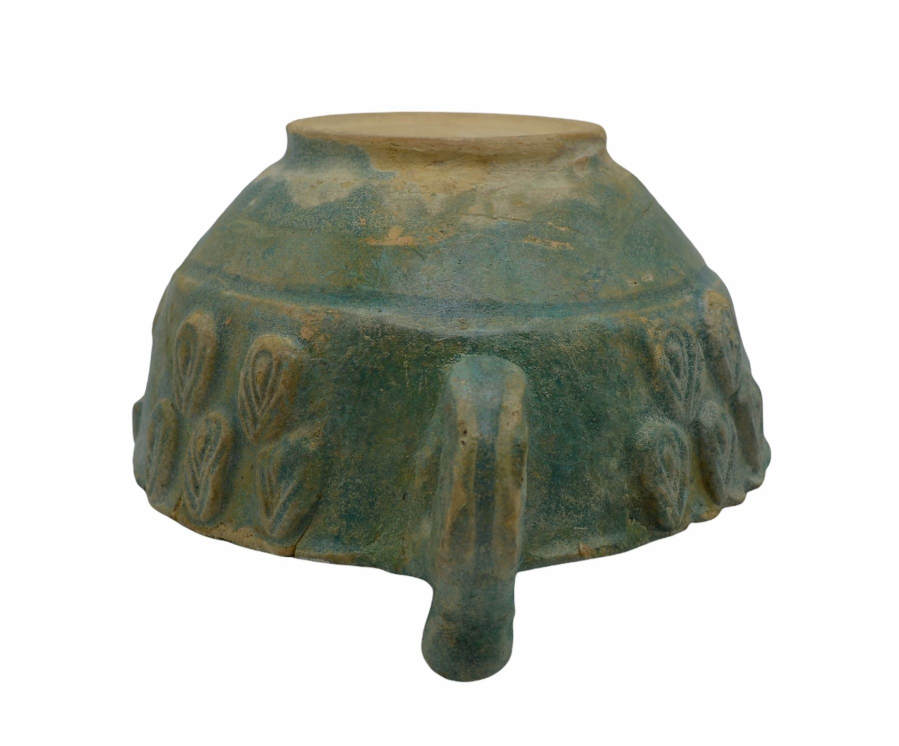 14 cm. diam. Of very rare early islamic ceramic with beautiful design, The form of this cup dates to the Roman period and was the standard form in silver under the Sogdian dynasty. The shape was copied both in ceramic and non-precious metals. For another example of the type, see Oliver Watson, Ceramics from Islamic Lands. The Al-Sabah Collection, 2004, p. 175, cat. D6.