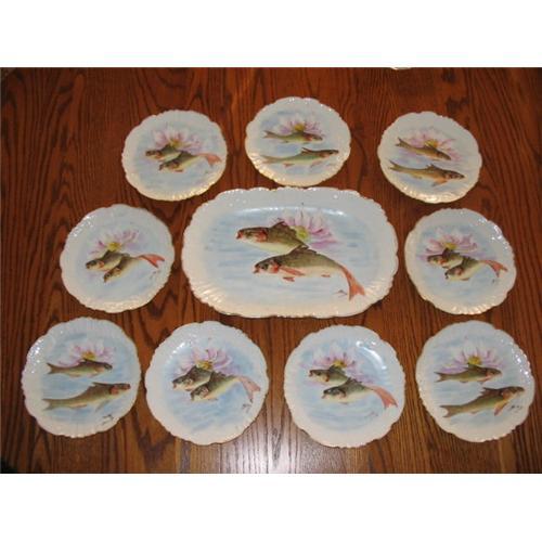 GORGEOUS ANTIQUE LIMOGES 10 PIECE FISH SET BY