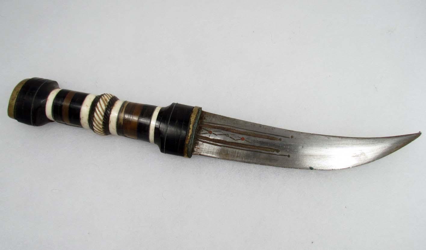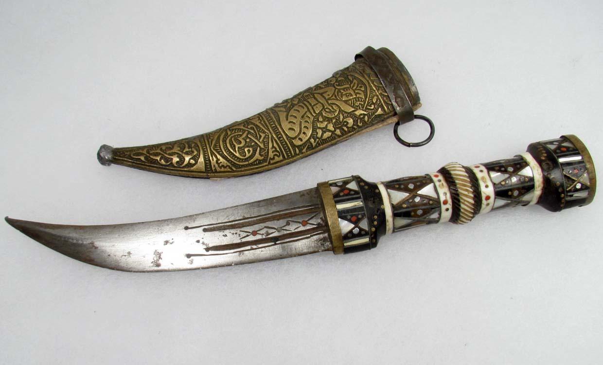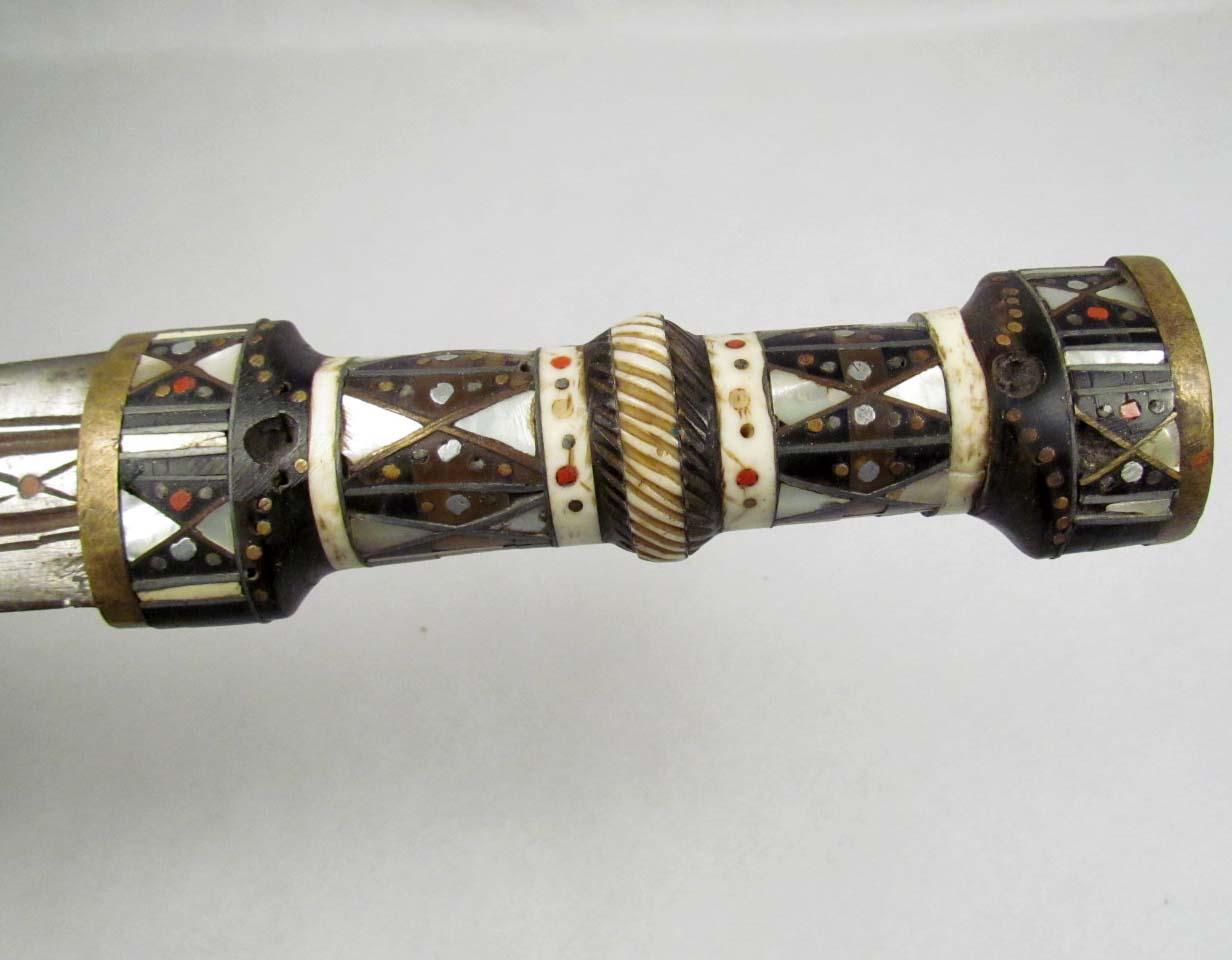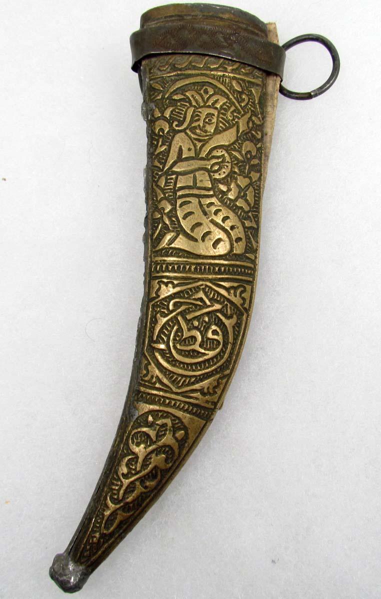 Metal sheath is elaborately embossed. Some condition issues. Approx. 11" long overall