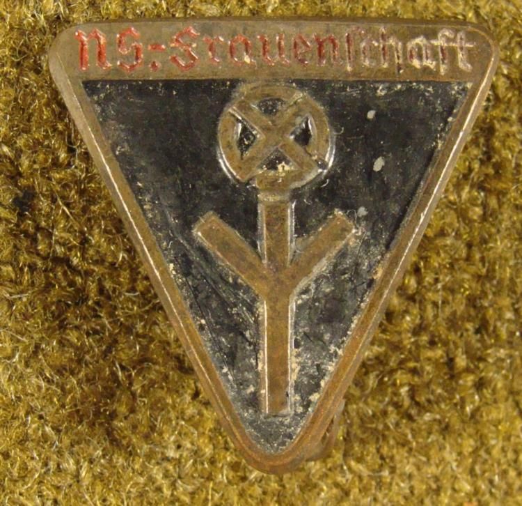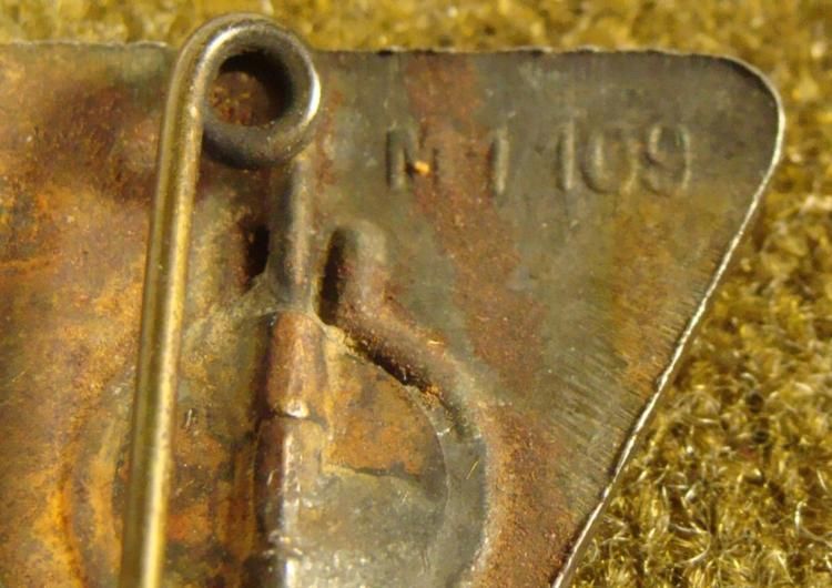 HERE IS AN ORIGINAL EARLY NAZI FRAUENSCHAFT MEMBERSHIP PIN WITH A RAISED INSIGNIA. ON THE REVERSE IT IS MARKED: M1/109. THIS IS A NICE EARLY ORIGINAL BADGE. *